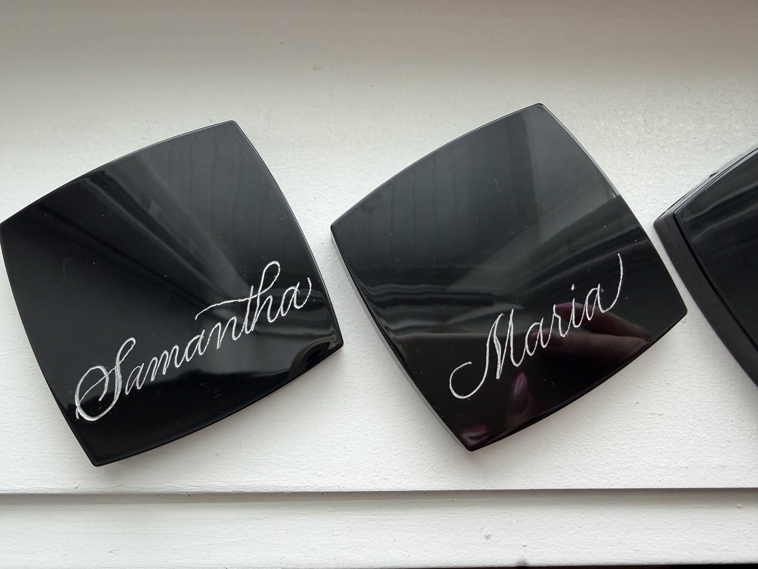 Personalized, elegant designs- names, dates, or short messages done on-site while guests watch.